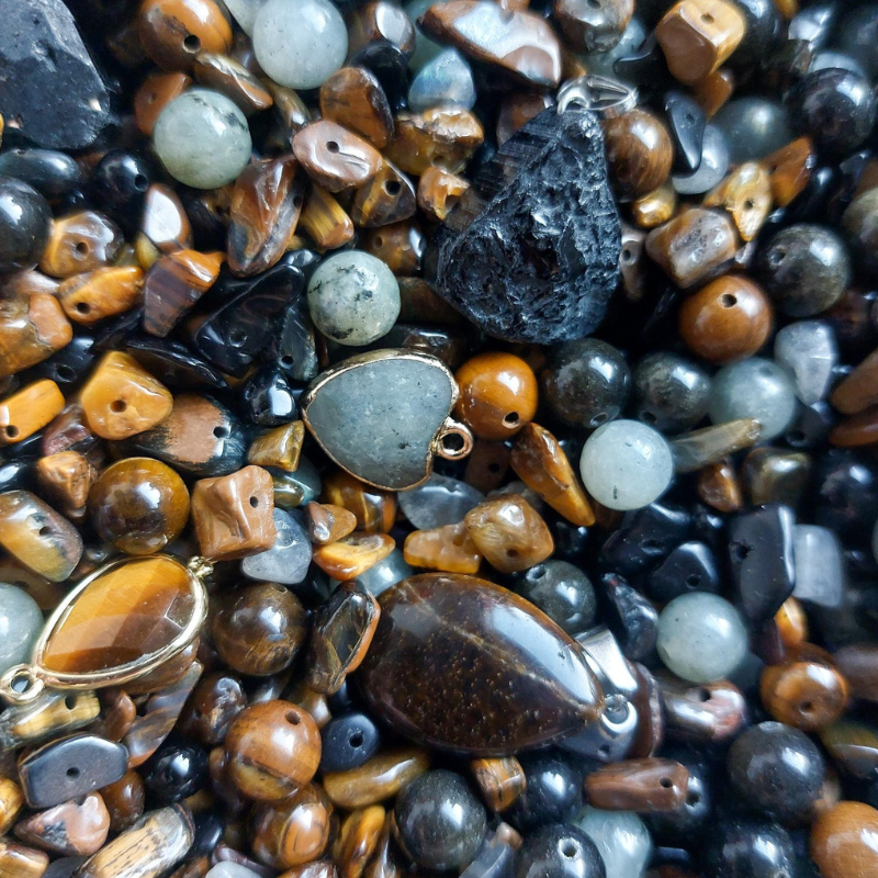 Tourmaline, Obsidienne Dorée, Oeil de Tigre et Labradorite